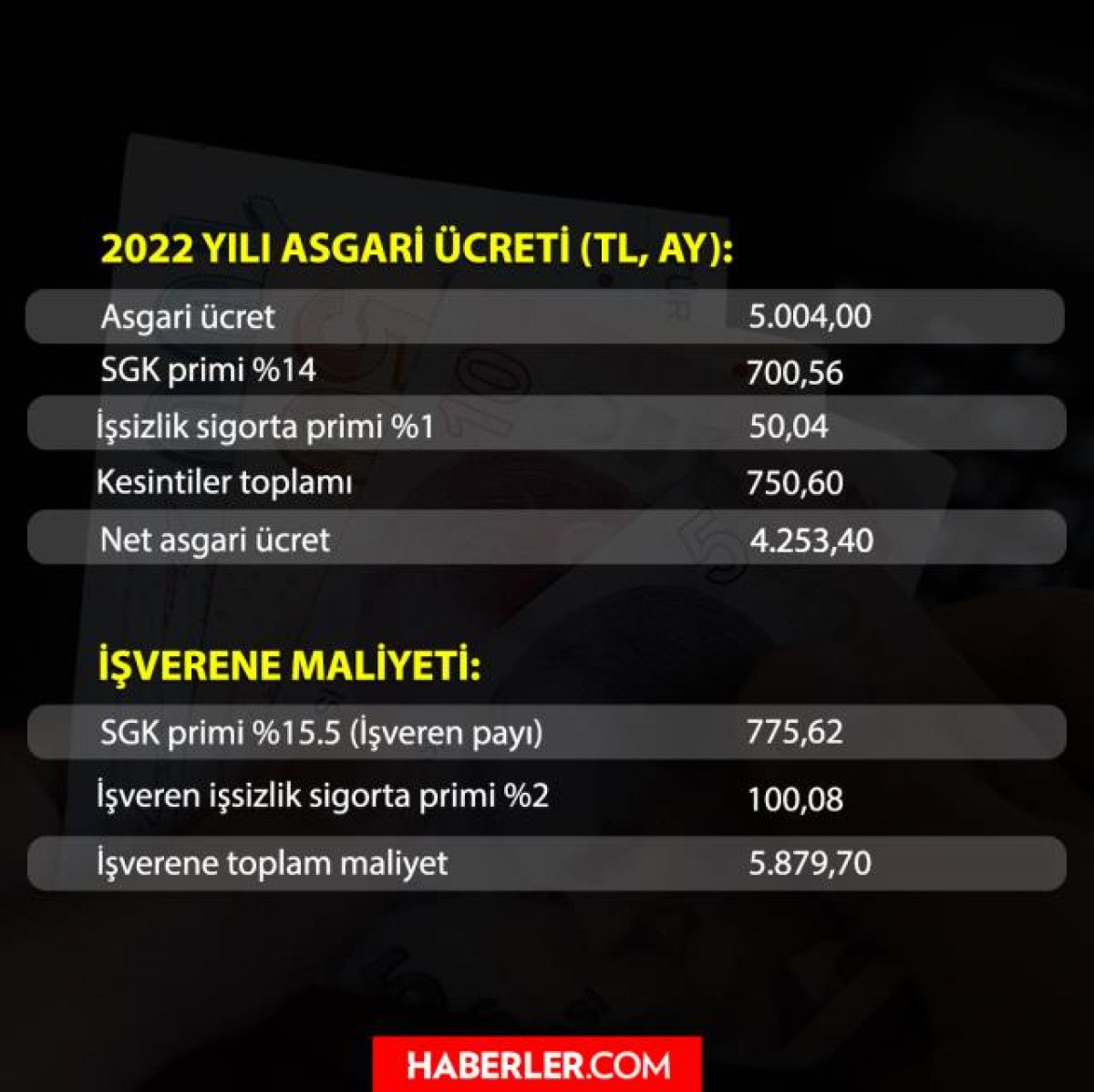 2022de asgari ücretin işverene maliyeti ne kadar?