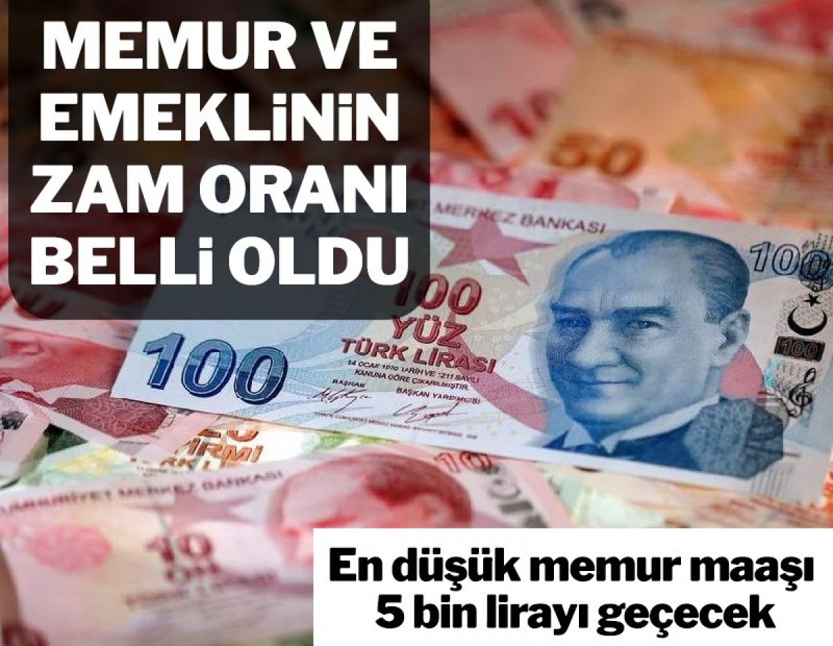 Yeni zamlarla birlikte En düşük memur maaşı 4 bin 444 liradan 5 bin 665 liraya, en düşük memur emeklisi aylığı 3 bin 166 liradan 4 bin 37 liraya çıktı.