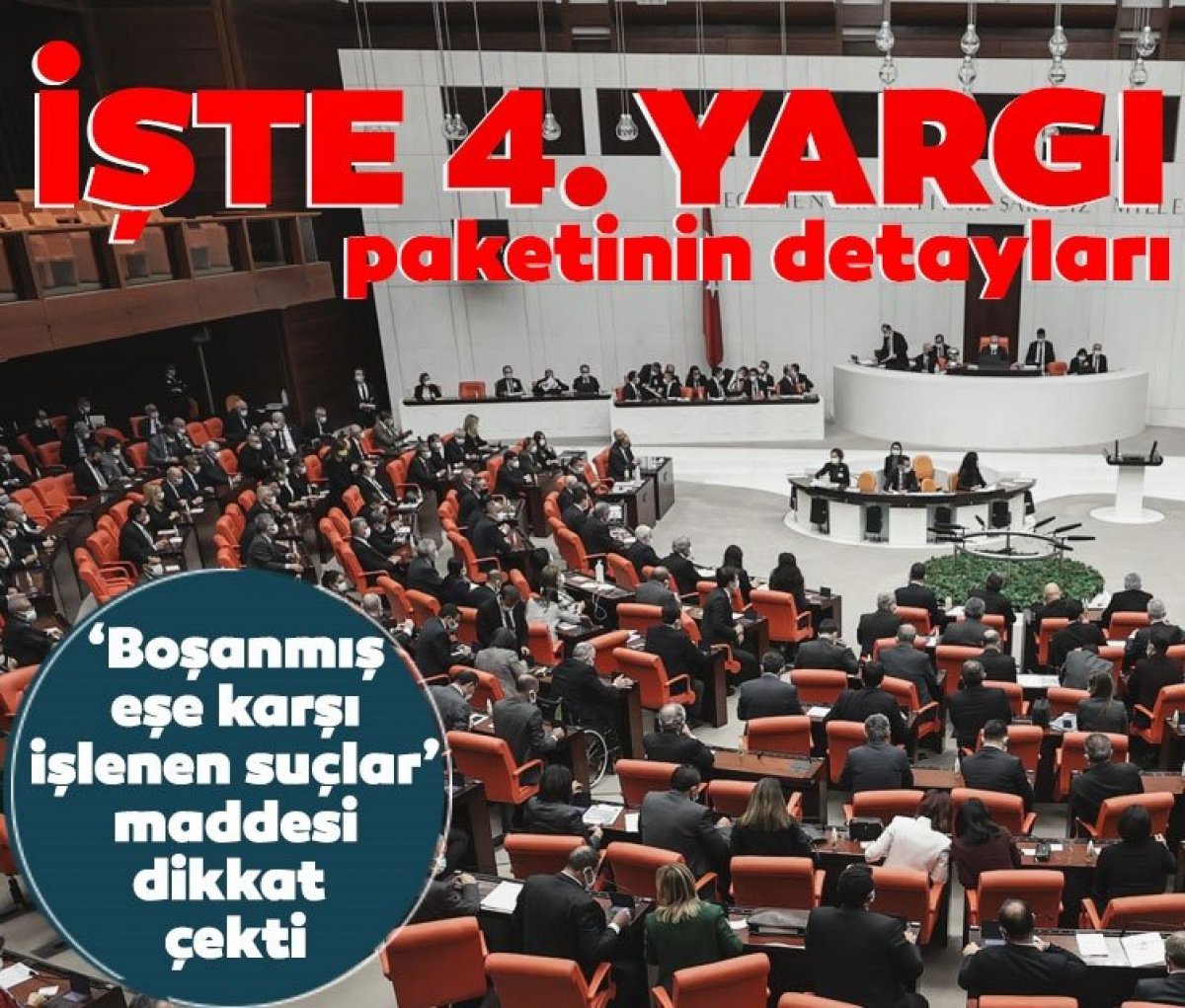 Hükümetin 4’üncü yargı paketinin ayrıntıları belli oldu. Adli kontrol şartı 2 yıl ile sınırlandırılacak, karar 4 ayda bir gözden geçirilecek. Ev hapsinde geçirilen 1 gün, 2 gün sayılacak, sonuç cezadan düşürülecek. Öte yandan, boşanmış eşe karşı işlenen suçlarda failler ağır cezaya mahkum edilecek.