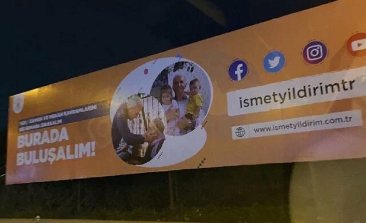 Billboardlardan belediyenin çalışmalarını tanıtmak yerine belediye başkanı İsmet Yıldırım'ın sosyal medya hesaplarının tanıtımının yapıldığı kaydedildi.