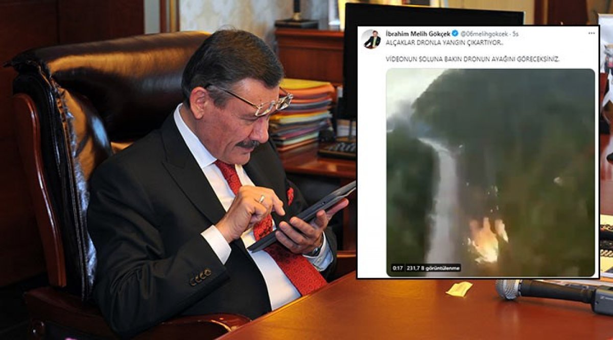Eski Ankara Büyükşehir Belediye Başkanı Melih Gökçek, sosyal medya hesabından video paylaşmış ve "Alçaklar dronla yangın çıkartıyor. Videonun soluna bakın dronun ayağını göreceksiniz" demişti.