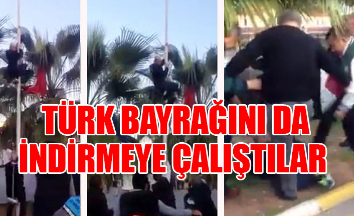 BAYRAĞI GÖNDERE ÇEKTİLER