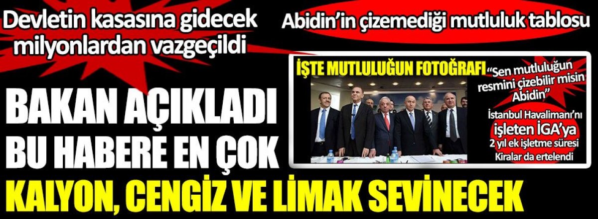 Bakan Karaismailoğlu açıkladı. Bu habere en çok Kalyon, Cengiz, Limak sevinecek. Devletin kasasına gidecek milyonlardan vazgeçildi