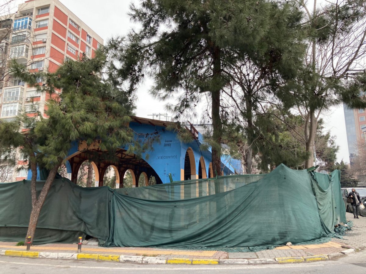 Arazi tapu kadastro kayıtlarında hala trafo binası olarak görünüyor. Bölgeye gittiğimizde arazinin yeşil brandalarla çevrildiğini ve içeride yoğun bir çalışma olduğunu gözlemledik. Arazi çevresinde çalışmalara ilişkin bilgilendirici bir tabelanın olmaması da dikkat çekti. İşçiler sorularımızı yanıtlamaktan kaçındı ve görüşülecek yetkili bir kişinin de arazide olmadığını söylediler. Sorularımızın yanıtlanması talebiyle not bırakmamıza karşın bir dönüş olmadı.