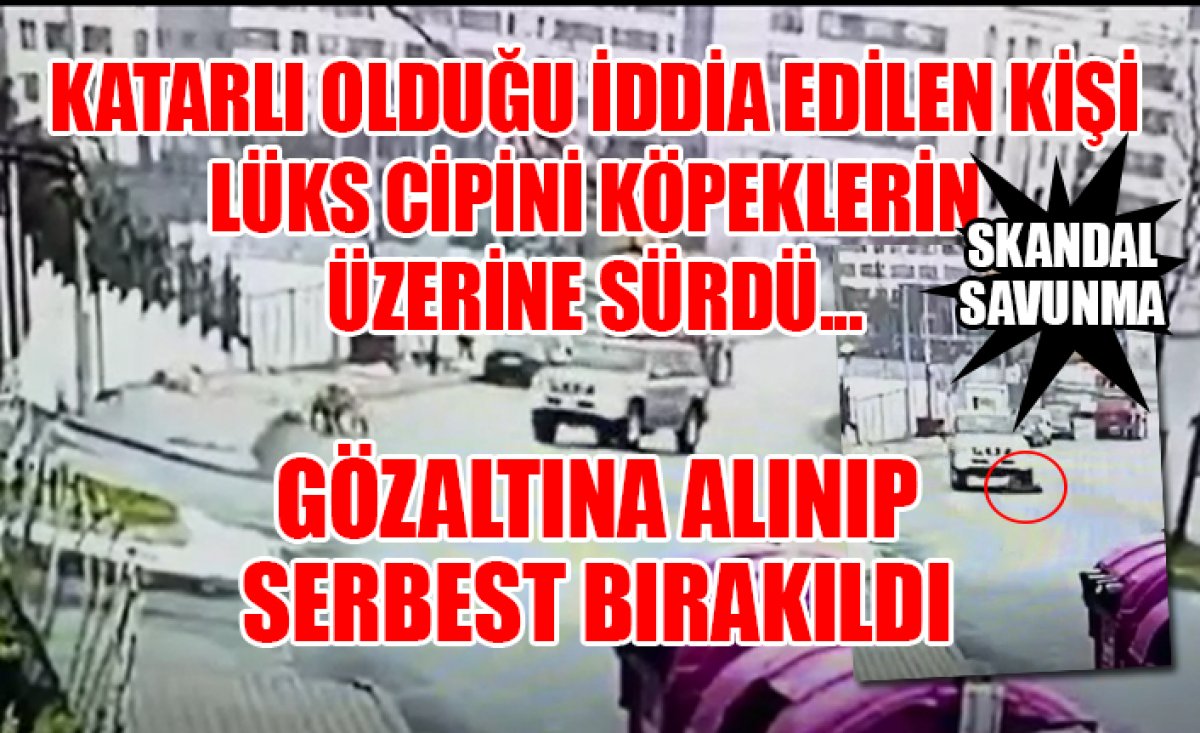 Başakşehirde yolun sol şeridinde giden cip sürücüsü, yolun sağ tarafında oynayan köpeklerin üzerine aracını sürdü. Bir köpek aracın altında kaldı feci şekilde can verdi. Katarlı olduğu iddia edilen sürücü gözaltına alınıp serbest bırakıldı.