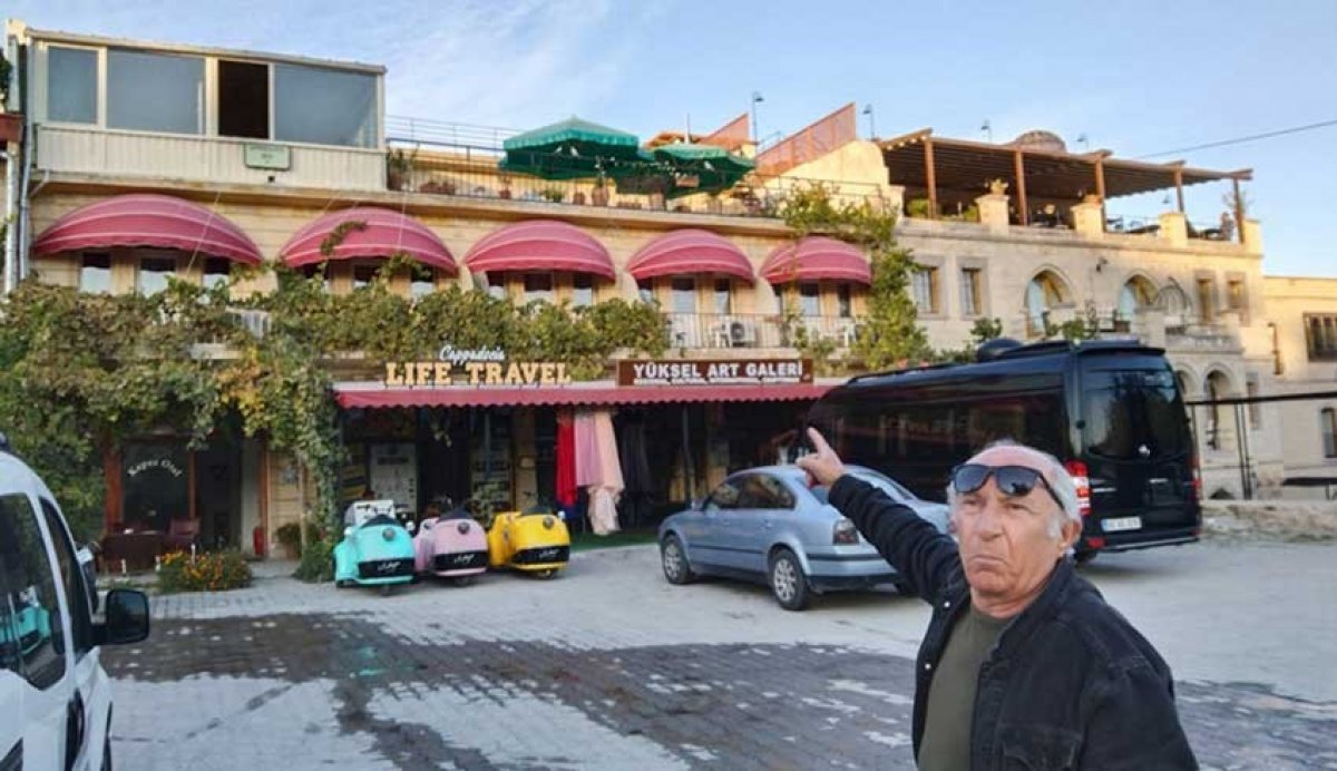 Kültür ve Turizm Bakanlığından onaylı belgesi bulunan Yüksel Eren, belediyelerin bazı uygulamalarına işaret ederek, kuzeni de olan Göreme Belediye Başkanı Ömer Erene ait olduğunu öne sürdüğü işletmenin terasını gösterdi