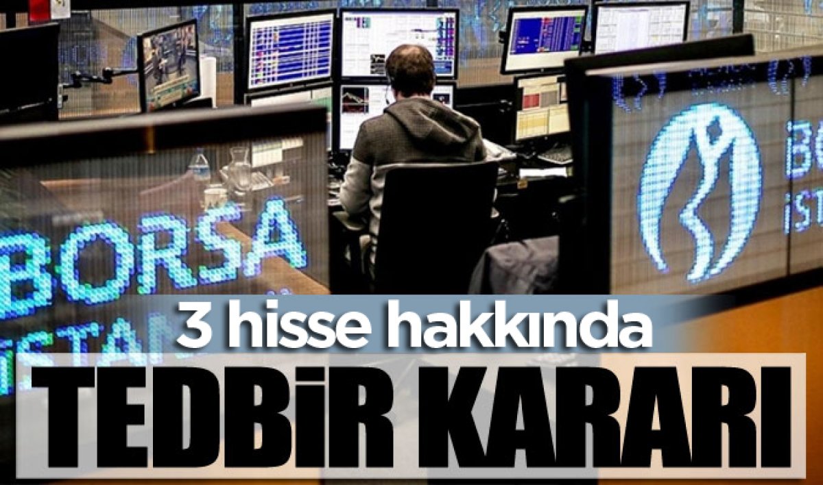 Borsa İstanbul, yürütülen incelemelerin ardından üç hissede Volatilite Bazlı Tedbir Sistemi (VBTS) kapsamında önleyici tedbir uygulanmasını kararlaştırdı.