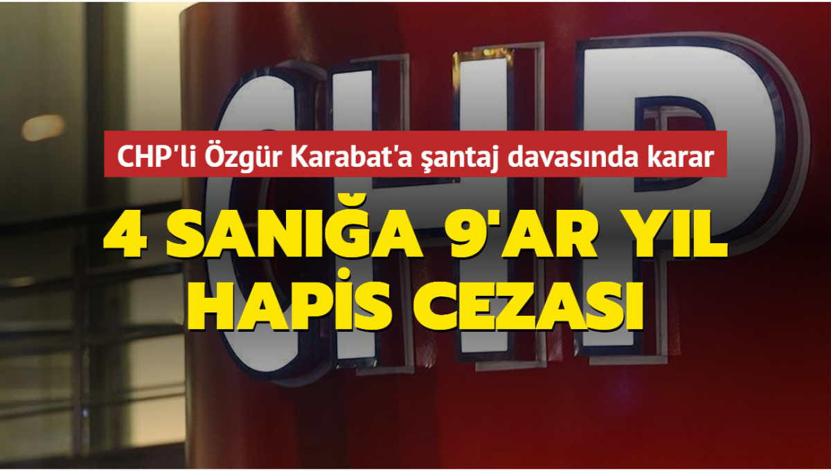 Cumhuriyet Halk Partisi (CHP) İstanbul Milletvekili Özgür Karabata, gizli kamera kaydıyla şantajda bulundukları iddiasıyla yargılanan 4 sanık hakkında karar çıktı. Mahkeme, sanıklar hakkında "Özel hayatın gizliliğini ihlal etmek", "Zincirleme şantaj", "Zincirleme şekilde özel hayata ilişkin görüntü ve sesleri ifşa etmek" suçlarından 9 yıl 6şar ay hapis cezası ve 12 bin 500er TL adli para cezasına çarptırdı.