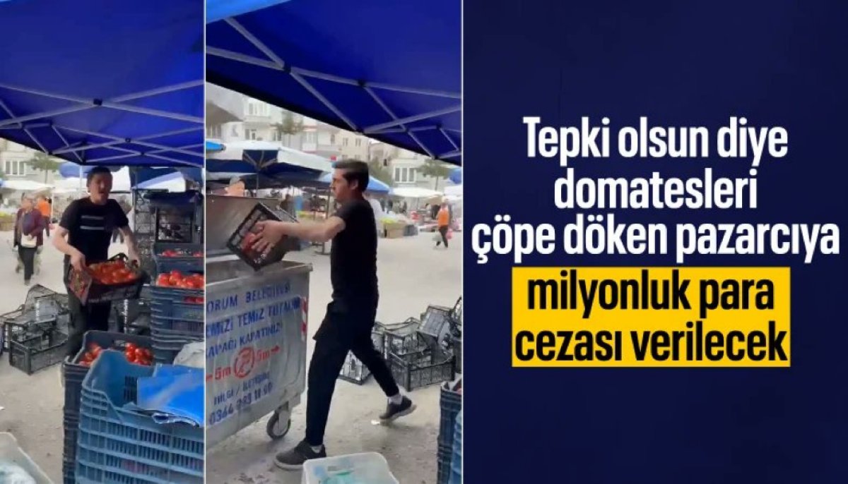 Çorum'da domatesleri çöpe döken pazarcıya milyonluk para cezası