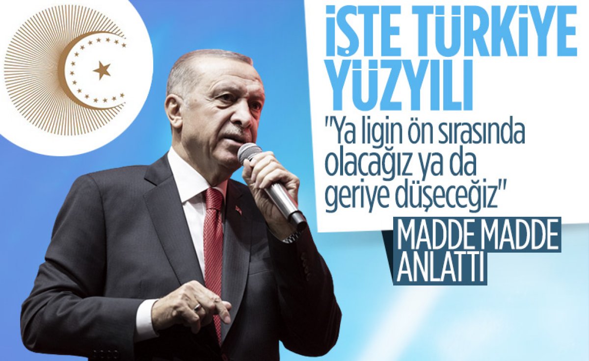 Türkiye Yüzyılı vizyonunda 16 farklı başlığın yer aldığı görüldü. Cumhurbaşkanı Erdoğan maddeleri tek tek açıkladı.