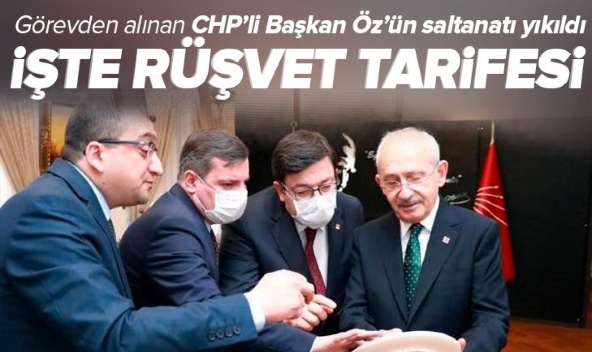 İçişleri Bakanlığı tarafından belediyeye gönderilen müfettişler belediyenin geriye dönük tüm ihalelerine incelemeye alırken, Başkan Öz'ün uzun bir süredir belediyede "Rüşvet tarifesi" uyguladığı da elde edilen belge ve banka hesap hareketleriyle tespit edildi.