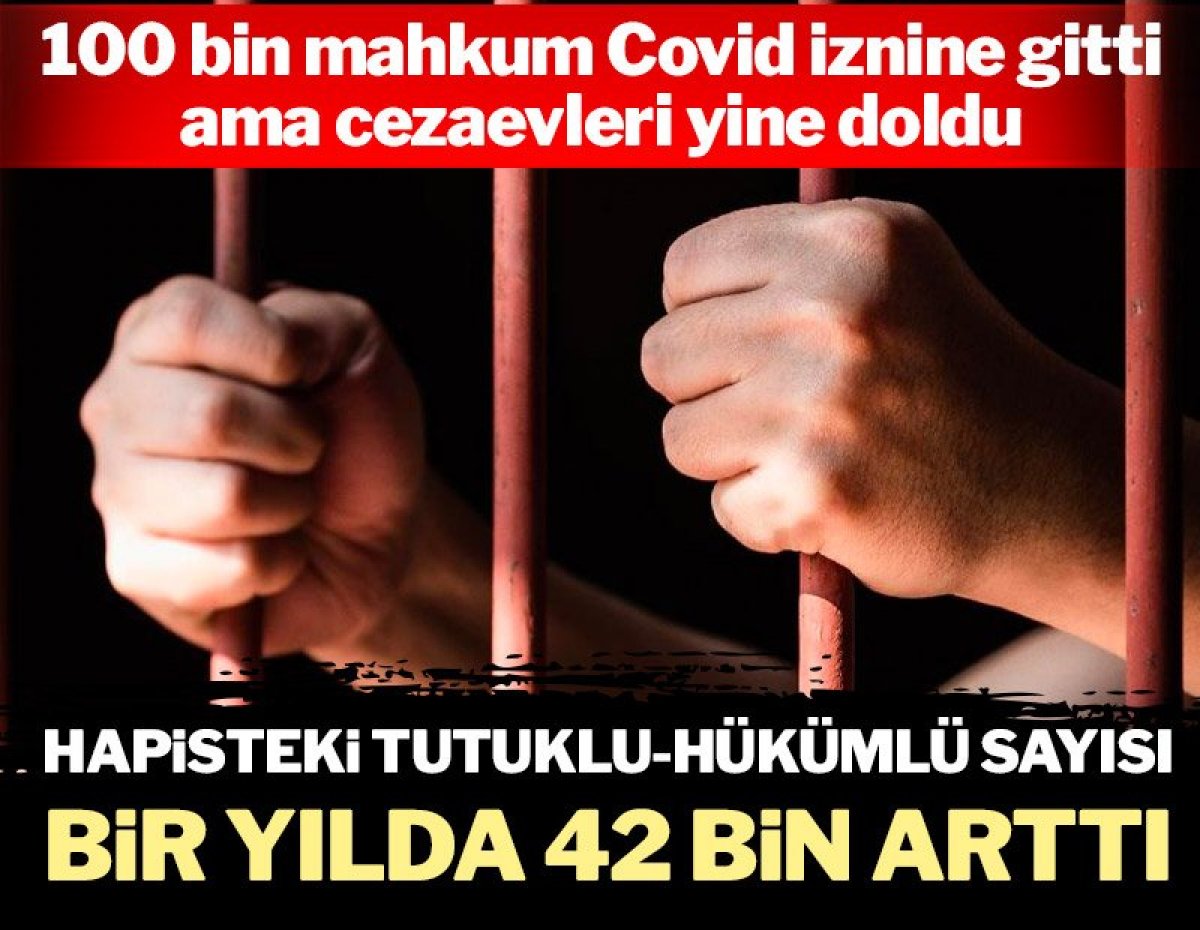 2021 yılında 272 bin kişinin olduğu cezaevlerinde bir yıl içindeki tutuklu ve hükümlü sayısı 42 bin kişi arttı.