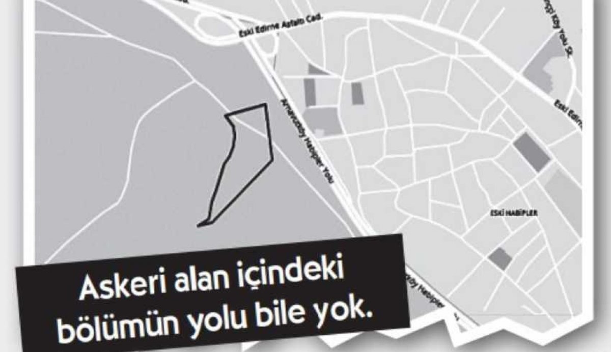 “Başakşehir’de bir arazi, bakın bu arazi askeriyenin olduğu alan. Vatandaşa ait bir yer. Lejantlarda herhangi bir fonksiyonu yok. Askeri eğitim alanı diye gözüküyor.