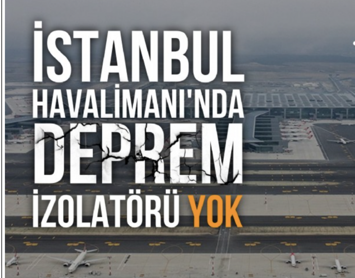 Avrupa Yakası'nda Karadeniz kıyısındaki Tayakadın ile Akpınar köyleri arasında yer alan İstanbul Havalimanı 2018 yılında kullanıma açılmıştı. İlk uçuş TK2124 koduyla 29 Ekim 2018 tarihinde İstanbul'dan Ankara'ya gerçekleştirilen ve tüm etapları tamamlandığında kapasitesi yıllık 200 milyon yolcuya çıkarılabilen havalimanının inşaatında sismik izolatör kullanılmadığı ortaya çıktı.