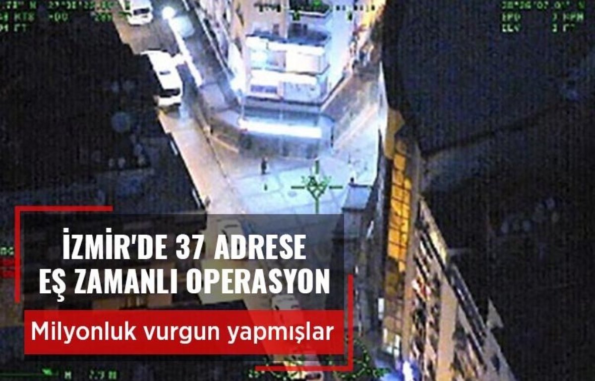 İzmir Cumhuriyet Başsavcılığı koordinesinde harekete geçen polis ekipleri, özel harekat polisinin de desteğiyle il genelinde eğlence mekanları olan 12 iş yeri ve 25 ikamet olmak üzere 37 adrese eş zamanlı baskın düzenledi.