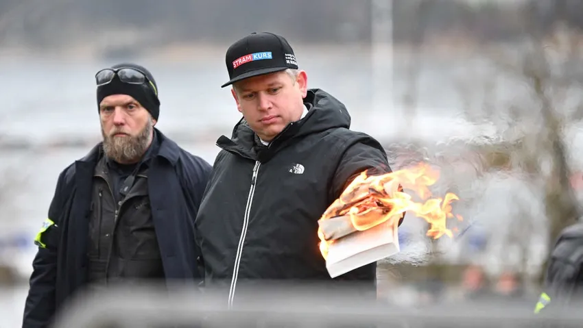 İsveç'te, Danimarkalı ırkçı Sıkı Yön Partisi (Stram Kurs) lideri Rasmus Paludan'a Türkiye'nin Stockholm Büyükelçiliği önünde Kur'an-ı Kerim yaktı.