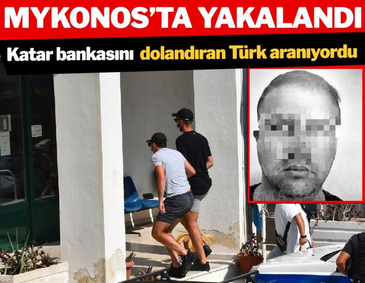 Katar bankasını dolandırdığı iddiası ile İnterpol tarafından 5 yıldır kırmızı bülten ile aranan Türk’ün Ege’deki Mykonos Adası’nda Yunanistan polisi tarafından tutuklandığı belirtildi.