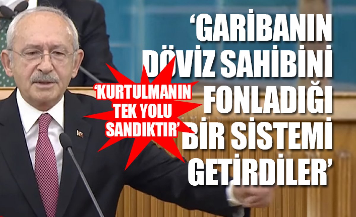 CHP Lideri Kemal Kılıçdaroğlu, partisinin grup toplantısında konuştu. Döviz endeksli mevduat uygulamasını değerlendiren Kılıçdaroğlu, "Gizli faizin dik alasını oynadılar. Garibanın döviz sahibini fonladığı bir düzeni getirdiler. Yani garibanın parasından ödenecek. Ahlak, din, iman var ya... Nas bunun neresinde?" neresinde dedi. Kılıçdaroğlu yapılanların organize kötülük olduğunu belirtti, erken seçim çağrısını yineledi. Kılıçdaroğlu konuşmasını, "Bir organize kötülükle karşı karşıyayız. Ama milletime sözümdür; namus sözümdür, boyun borcumdur, bu organize kötülüğü yok edinceye kadar mücadele edeceğim." diyerek bitirdi.