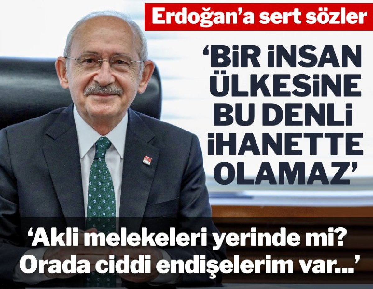 CHP lideri Kılıçdaroğlu, "Erdoğanı muhatap almak bile yanlış aslında. Akli melekeleri yerinde mi onda da ciddi endişelerim var. Bir insan ülkesine bu kadar ihanet içinde olamaz" diye konuştu.