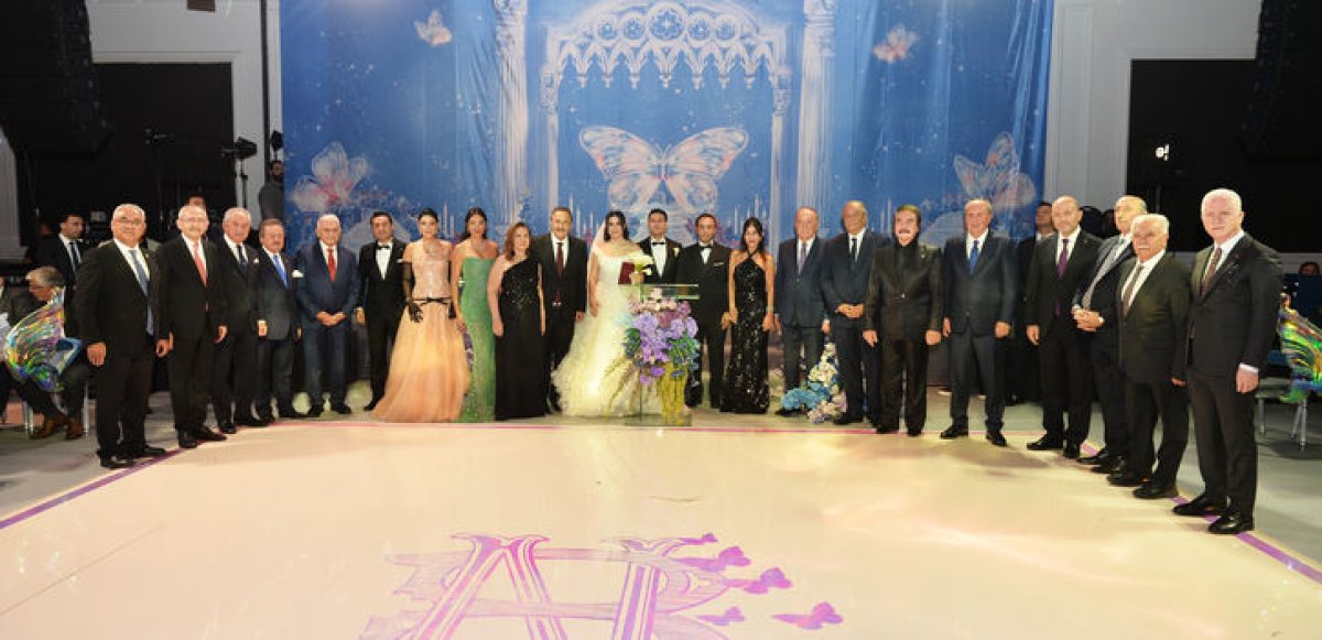 Çırağan Sarayı'nda gerçekleştirilen düğüne; Kemal Kılıçdaroğlu, Binali Yıldırım, İlhan Kesici, Süleyman Soylu, Muharrem İnce, İstanbul Valisi Davut Gül, Doğu Perinçek, Hüsamettin Özkan, Suzan Sabancı, Cavit Çağlar, Tuncay Özilhan, Orhan Gencebay, Yüksel Mermer, Yavuz Bingöl, Coşkun Sabah, Cengiz Kurtoğlu, Erol Evgin, Selami Şahin, Kubat ve Mehmet Aslan gibi iş, siyaset ve sanat dünyasında ünlü isimler katıldı.