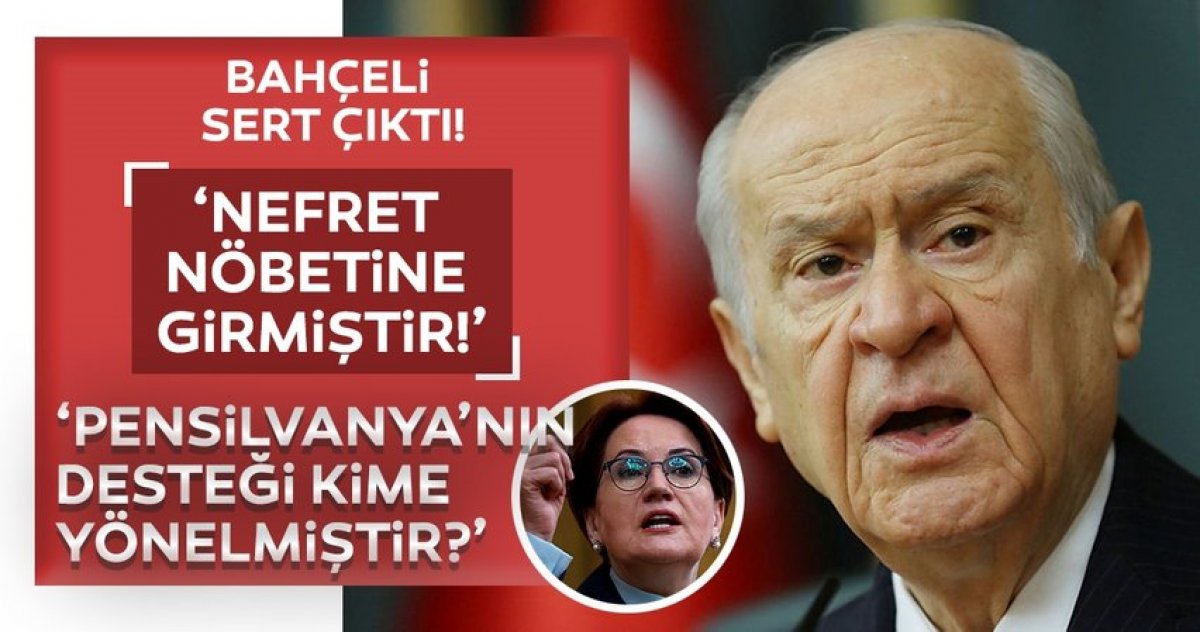 Son dakika açıklamalarında bulunan MHP lideri Devlet Bahçeli sosyal medya üzerinden kritik mesajlar verdi. Bahçeli İYİ Parti Genel Başkanı Meral Akşener'in nefret nöbetine girdiğini söyledi.