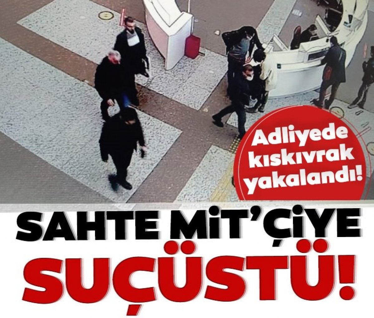 Kendisini Milli İstihbarat Teşkilatı (MİT) elemanı olarak tanıtıp, soruşturma dosyalarını kapatacağını söylediği kişiden değişik zamanlarda toplam 380 bin TL aldığı iddia edilen şüpheli, adliyede suçüstü yakalandı. Şüphelinin şikayetçi ile adliyede buluşması ve gözaltına alındığı anlar, güvenlik kameralarına yansıdı. Şüpheli, mahkemece tutuklandı.