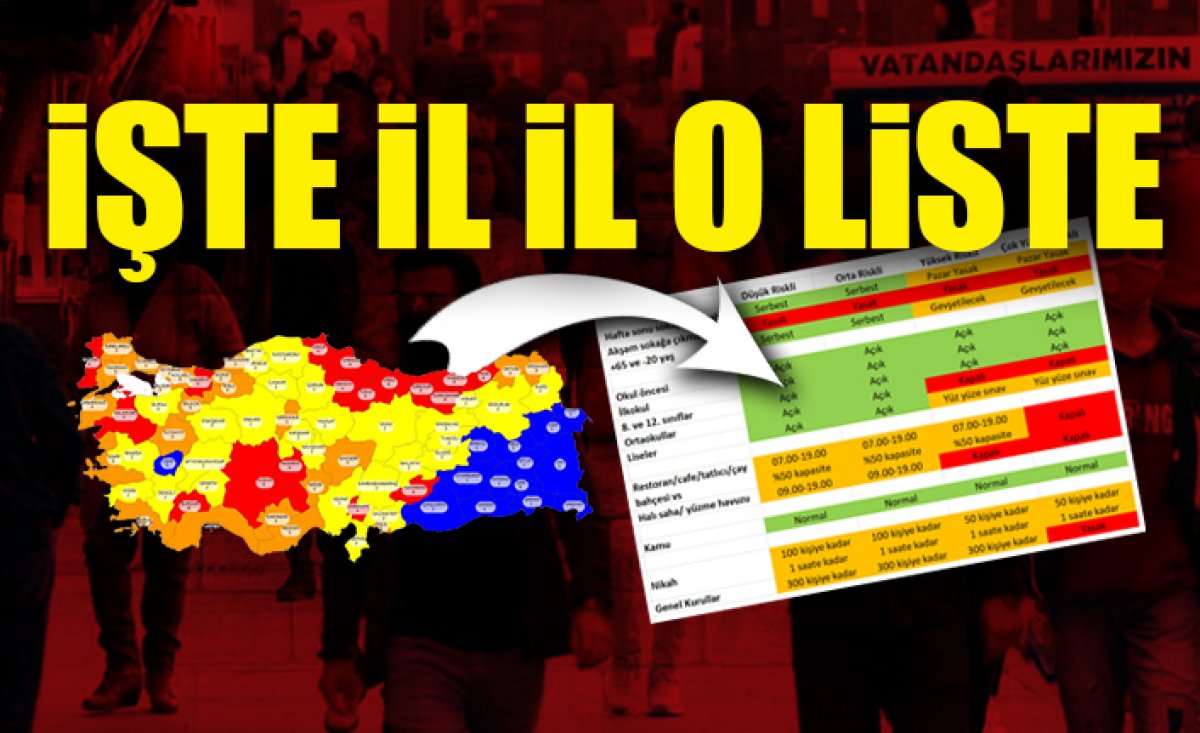 Vatandaşların yaşadıkları kentlerde alınan normalleşme kararlarının nasıl uygulanacağı konusunda kafası karıştı. İşte kentlerin risk haritasındaki yeri ve uygulanacak kararları gösteren tablo: