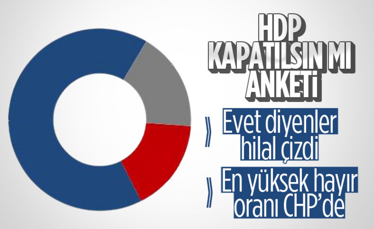 Yapılan ankette vatandaşlar, ezici bir çoğunlukla (yüzde 66) HDP'nin kapatılmasını isterken, yüzde "17,6 fikrim yok", yüzde 16,4 ise "hayır" cevabını verdi.