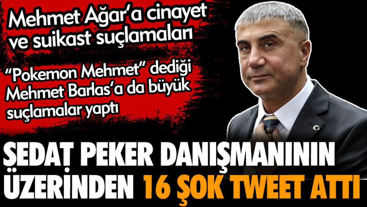 Sedat Peker danışmanın üzerinden 16 şok tweet attı. Mehmet Ağar'a cinayet ve suikast suçlamaları. Pokemon Mehmet dediği Mehmet Barlas'a da büyük suçlamalar yaptı
