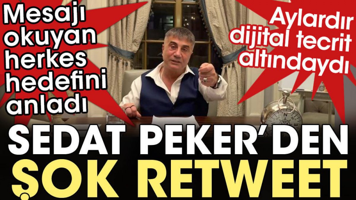 Organize suç örgütü olduğu iddiasıyla hakkında yakalama kararı bulunan Sedat Peker aylardır süren sessizliğini bozdu. Birleşik Arap Emirlikleri'nde bulunan ve "dijital tecrit" altında olduğu belirtilen Sedat Peker 3 Eylül’den bu yana sosyal medya hesabından paylaşım yapmıyordu. Peker bugün akşam saatlerinde yaptığı bir retweet ile sessizliğini bozdu.