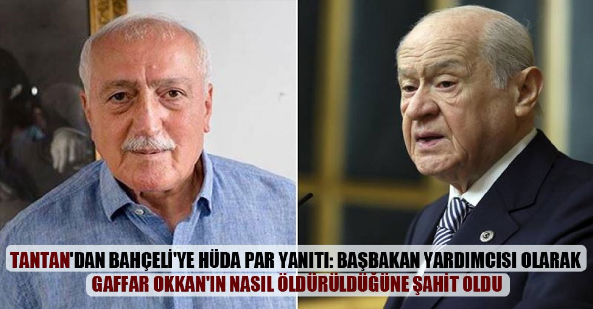 Eski İçişleri Bakanı Sadettin Tantan, HÜDA Par’ın hiçbir terör örgütüyle bağ ve bağlantısı olmadığını söyleyen MHP lideri Devlet Bahçeli’ye, “Gaffan Okkan’ın nasıl öldürüldüğüne başbakan yardımcısı olarak şahit olmuş biri. Bunları nasıl söyleyebiliyor anlamak mümkün değil" diye yanıt verdi.