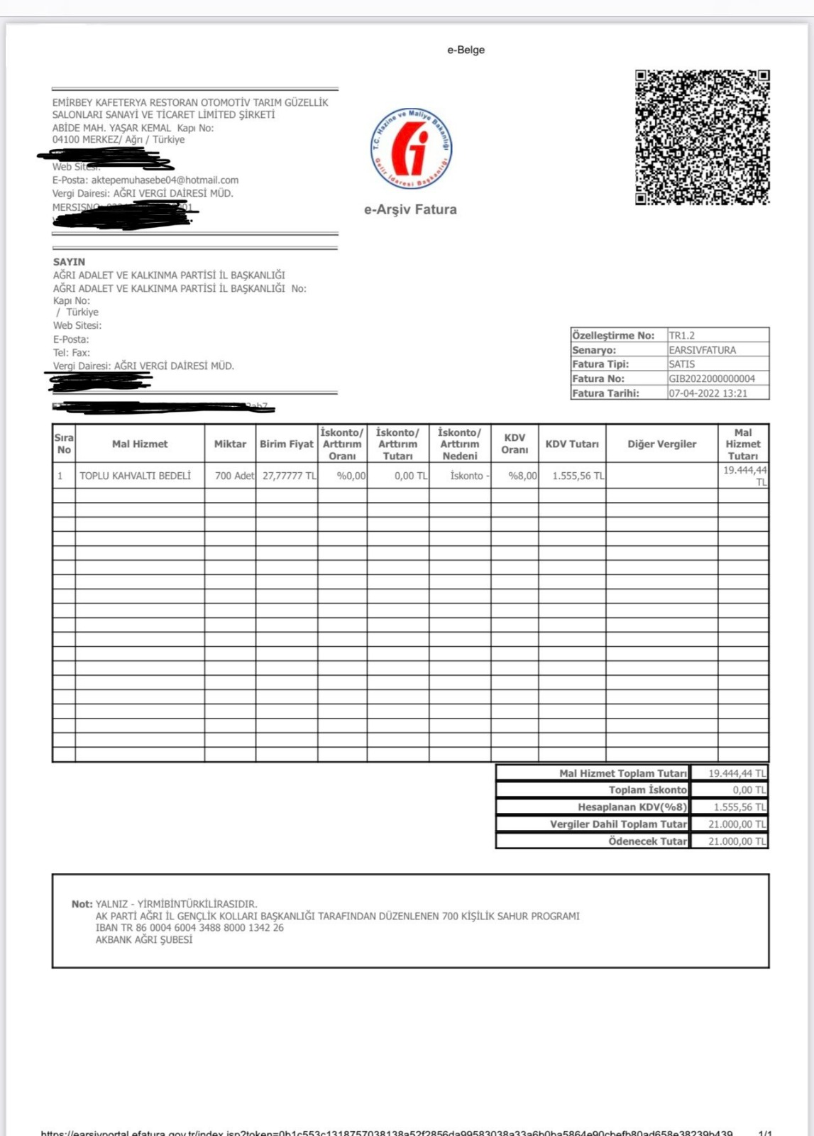 Sayan, 700 kişilik sahur etkinliği için bin 555 lira 54 kuruş KDV ve hizmet bedeli olarak 19 bin 444 lira 44 kuruş ödendiğini söyleyerek, sahurun faturasını gösterdi. Ancak AKP Gençlik Kolları Başkanı Eyyüp Kadir İnan, çeşitli şehirlerden paylaştığı sahur fotoğraflarında Ağrı'daki etkinliğin 1500 öğrenciyle gerçekleştirildiğini yazmıştı.