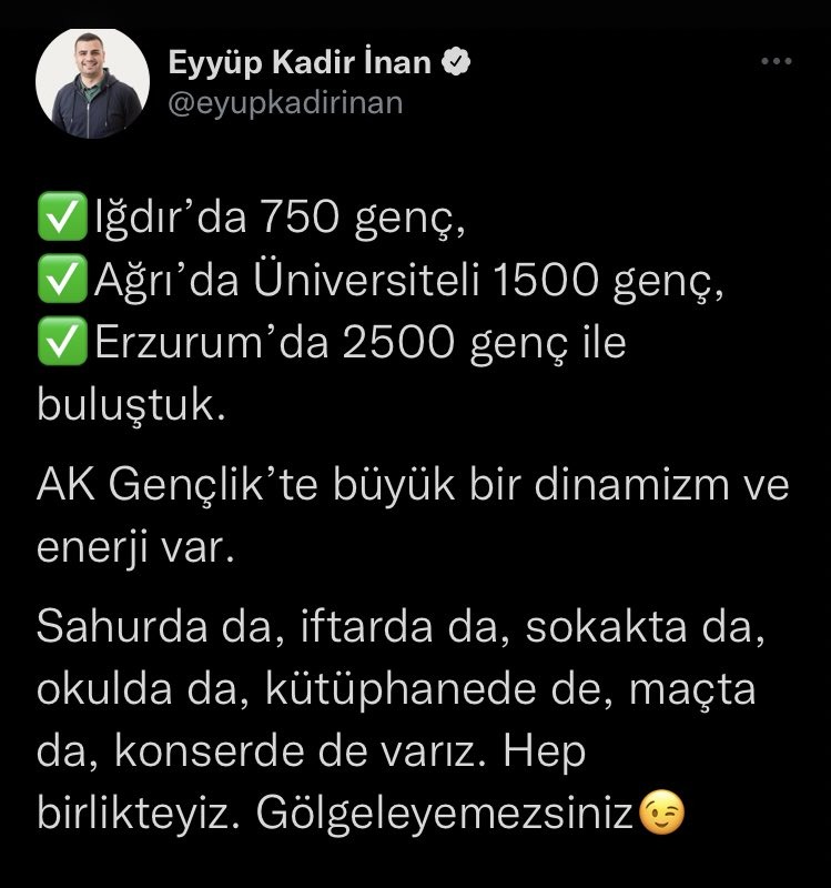AKP Gençlik Kolları Başkanı İnan'ın paylaşımı ise şöyle: