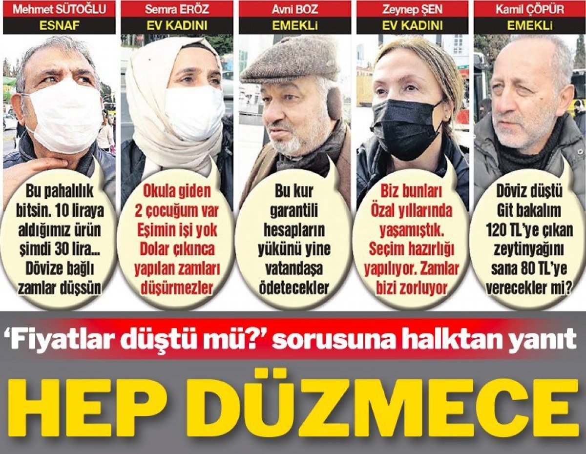 İstanbul Şişli'de vatandaşlara, “İktidarın kur korumalı mevduat uygulamasıyla ABD dolarına garanti vermesi hakkında görüşünüz nedir? Bu uygulamayla fiyatlarda indirim olacağı belirtiliyor. Böyle bir indirim süreci başladı mı sizce? İndirimi hayatınızda hissetmeye başladınız mı?” diye sorduk, aldığımız yanıtlar şöyle oldu: