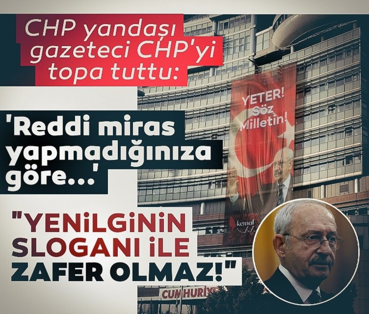 Başkan Recep Tayyip Erdoğan'ın, 'Yeter! Söz de, karar da milletindir' ifadesi sonrası CHP de aynı slogana sarıldı. CHP Genel Merkezi'ne, Genel Başkan Kemal Kılıçdaroğlu'nun fotoğrafı ile birlikte, 'Yeter! Söz milletindir' ifadelerinin yer aldığı afiş asıldı. Bu afiş büyük tepki çekti. Tepkinin nedeni ise, bu sözlerin CHP'yi sandığa gömen slogan olmasıydı.